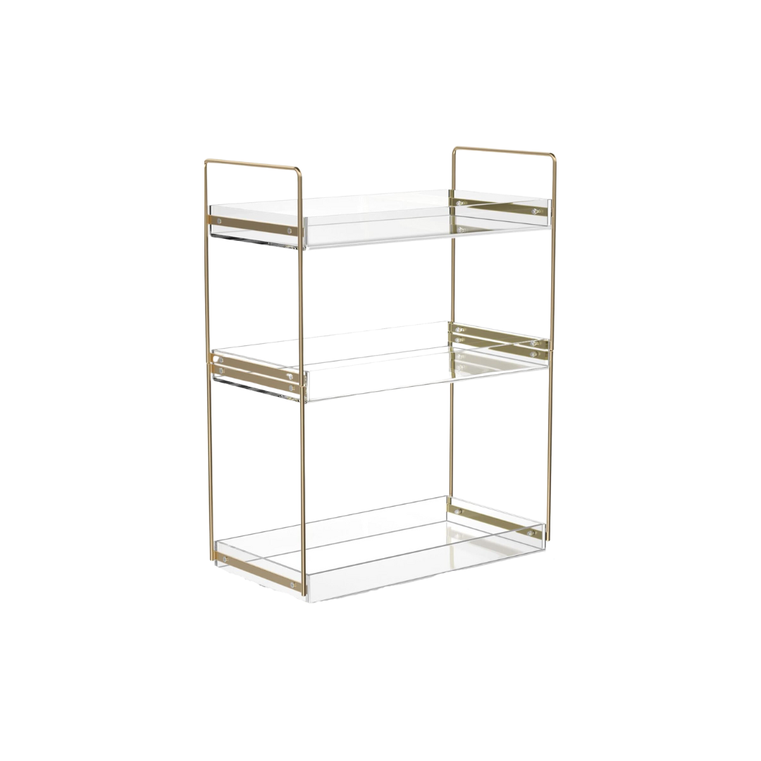 This beauty organizer keeps cosmetics neatly arranged in your bathroom (or any room!) with stylish compartments and levels that are perfect for organizing your skincare and makeup products and routine.