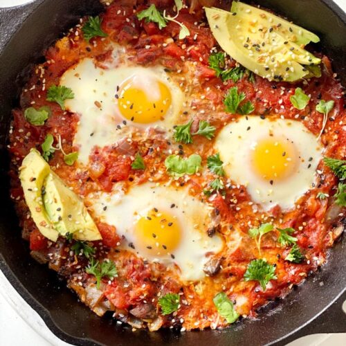 Have you tried Shakshuka? Whether itโs a new dish youโve never tried or one of your favorites, I highly recommend making it one day for brunch! It is super easy to whip up and packed with lots of veggies and eggs to get tons of protein, zinc, and vitamins in!