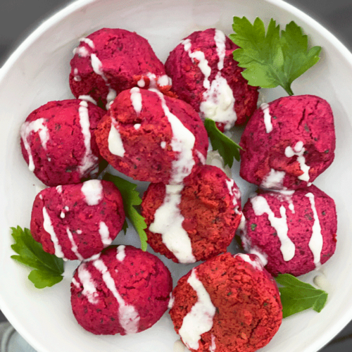 Air Fryer Beet Falafel with Roasted Garlic Tahini Sauce