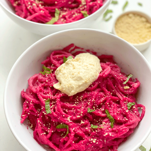 This easy to make pasta recipe uses boiled and cooked beets and my homemade vegan cashew ricotta. It’s the perfect dinner that is vegan and gluten free. It is full of earthy flavor from the beet and has a light and airy sauce.