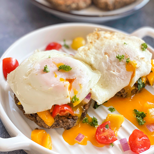 - Add the salsa on top of each patty and add a fried egg (optional) on top. ENJOY!